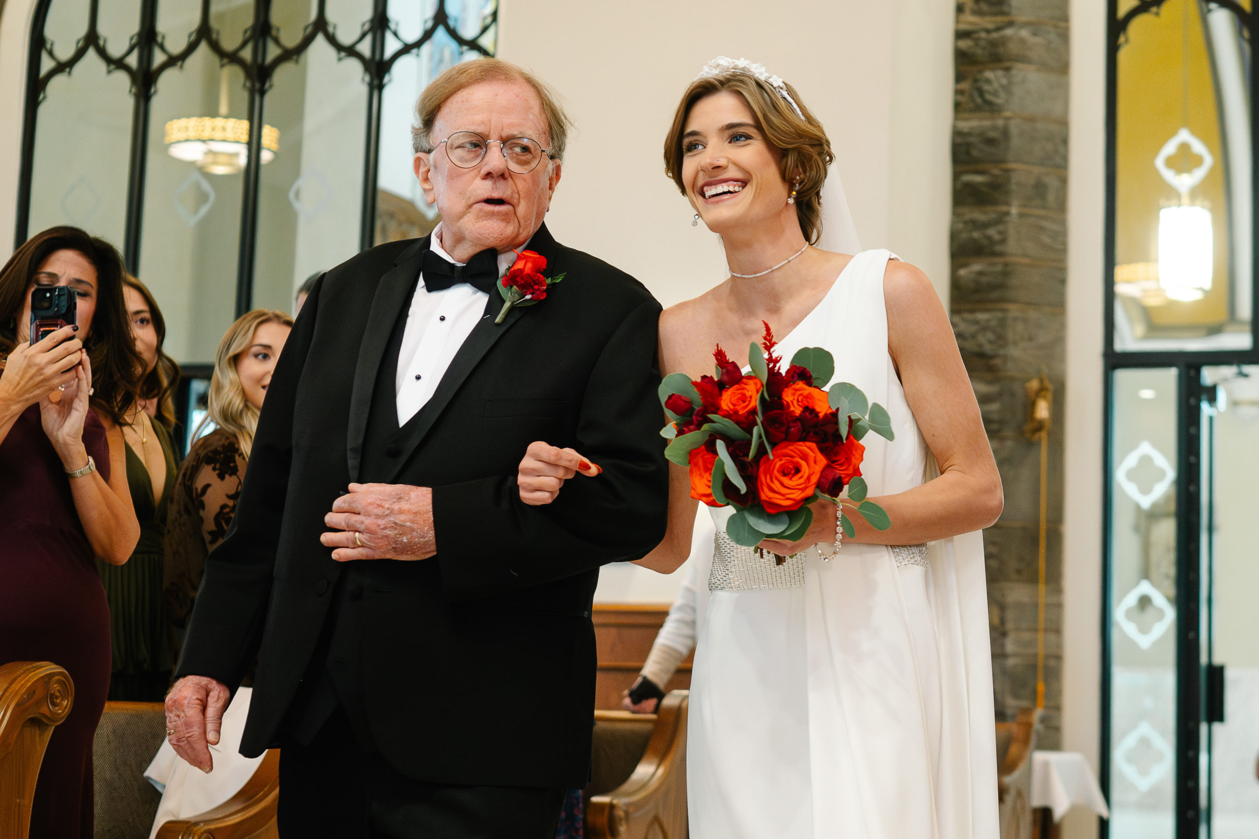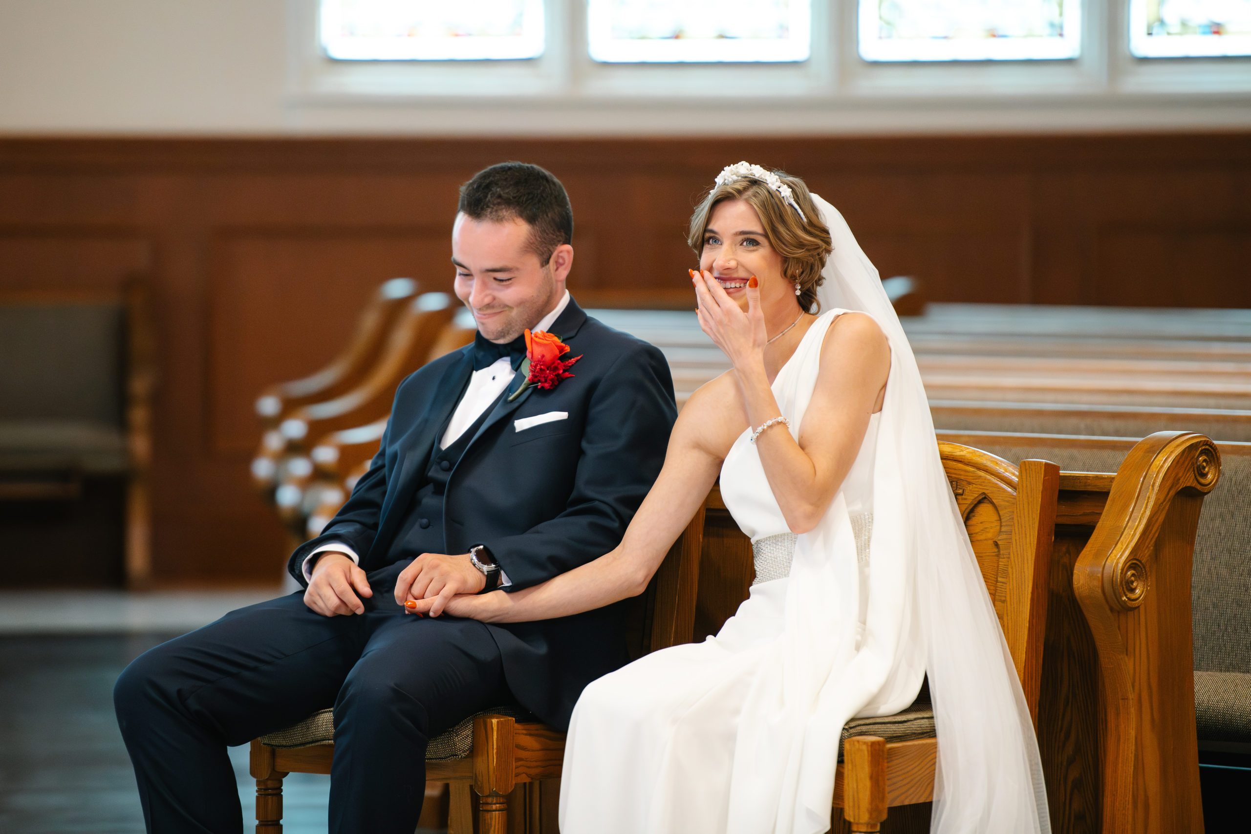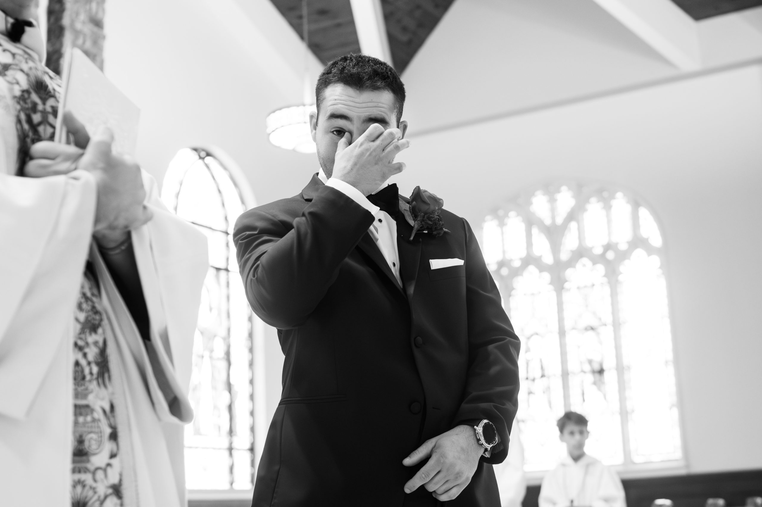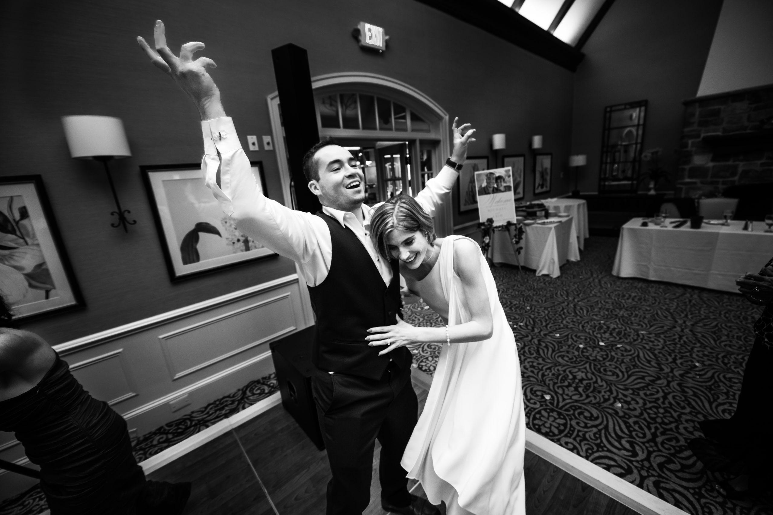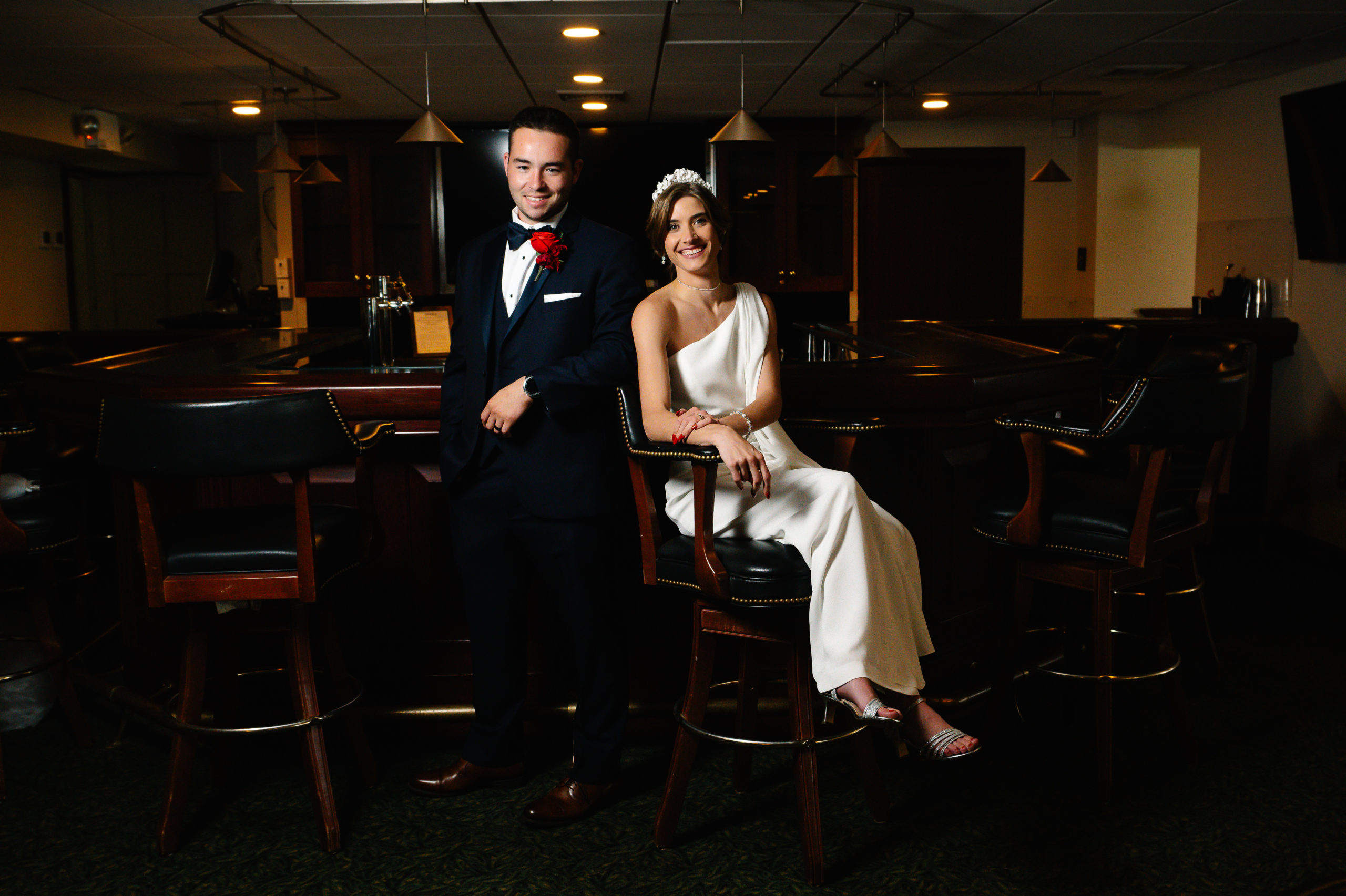 The ceremony took place at St. Patrick Parish in Malvern and the Reception at the Rolling Green Golf Club in Springfield. The rain timed itself just perfectly for us to arrive at the reception venue in a downpour, so we were forced to shoot all the couple’s portraits indoors.