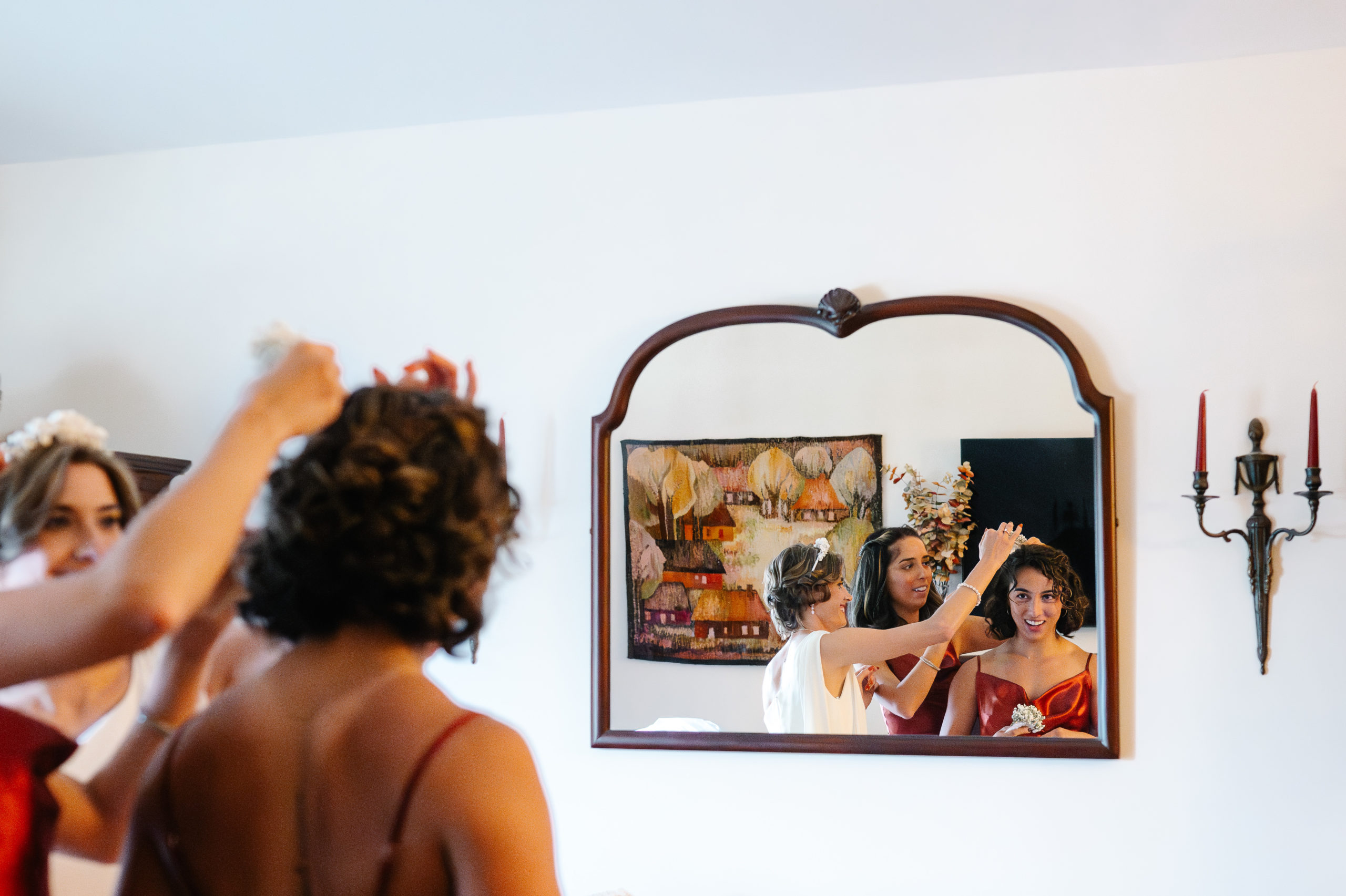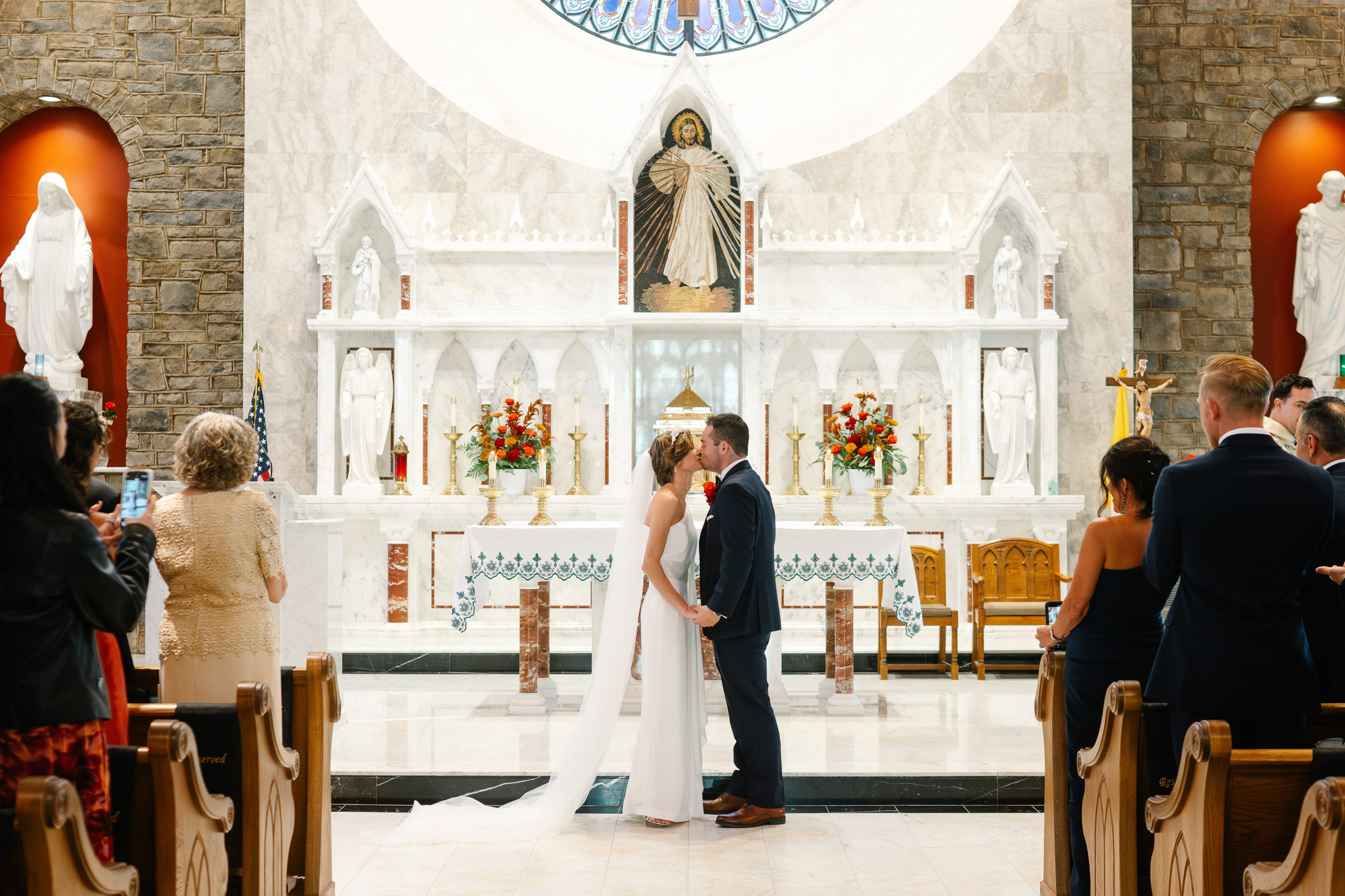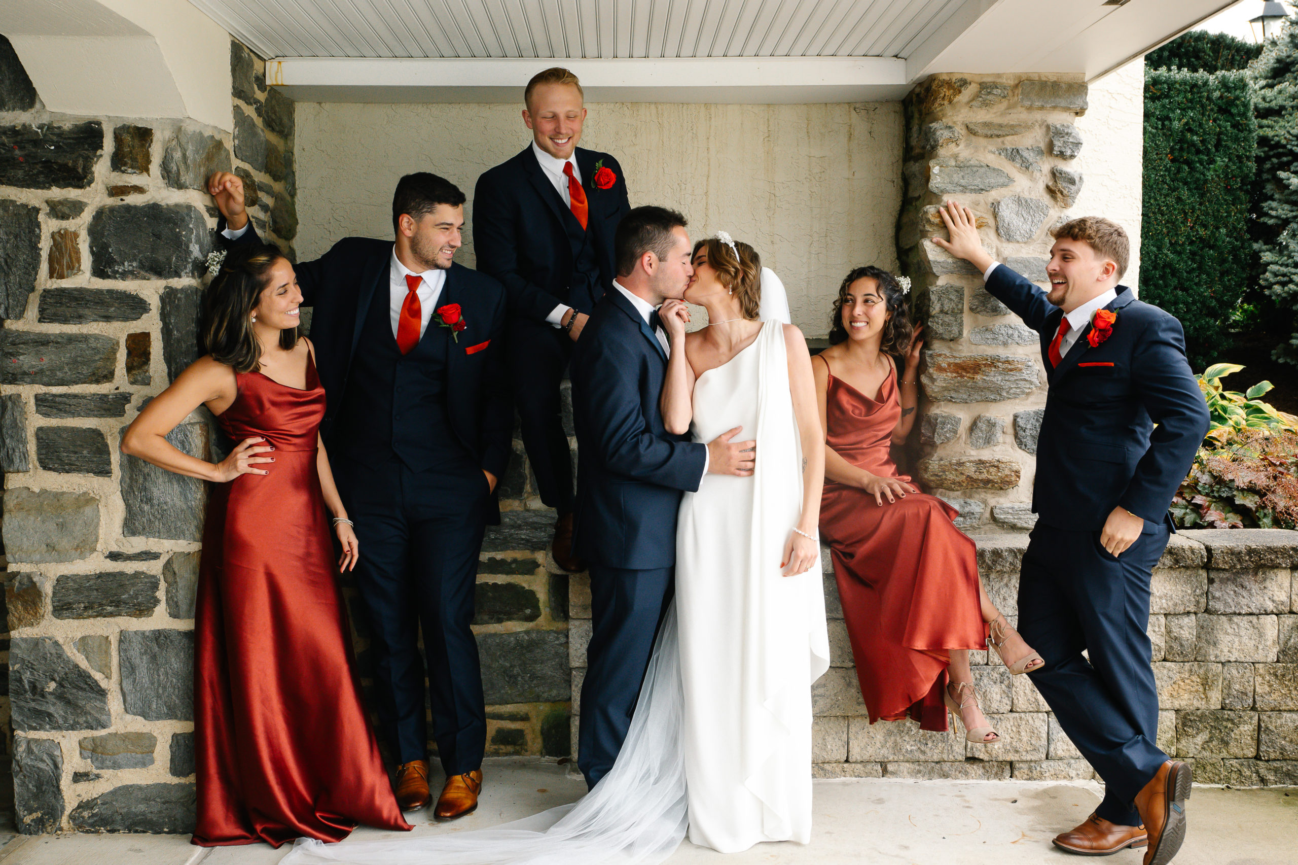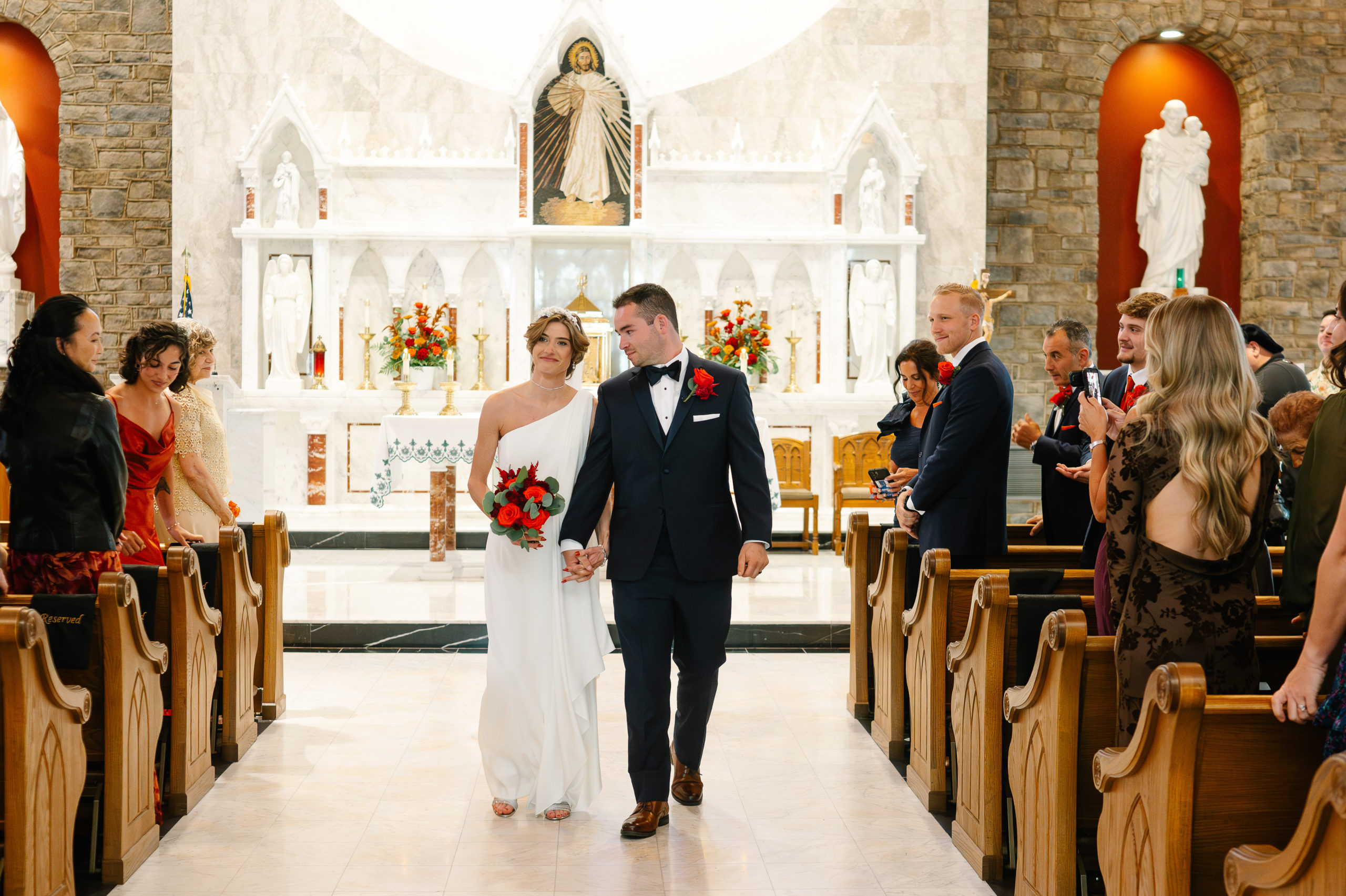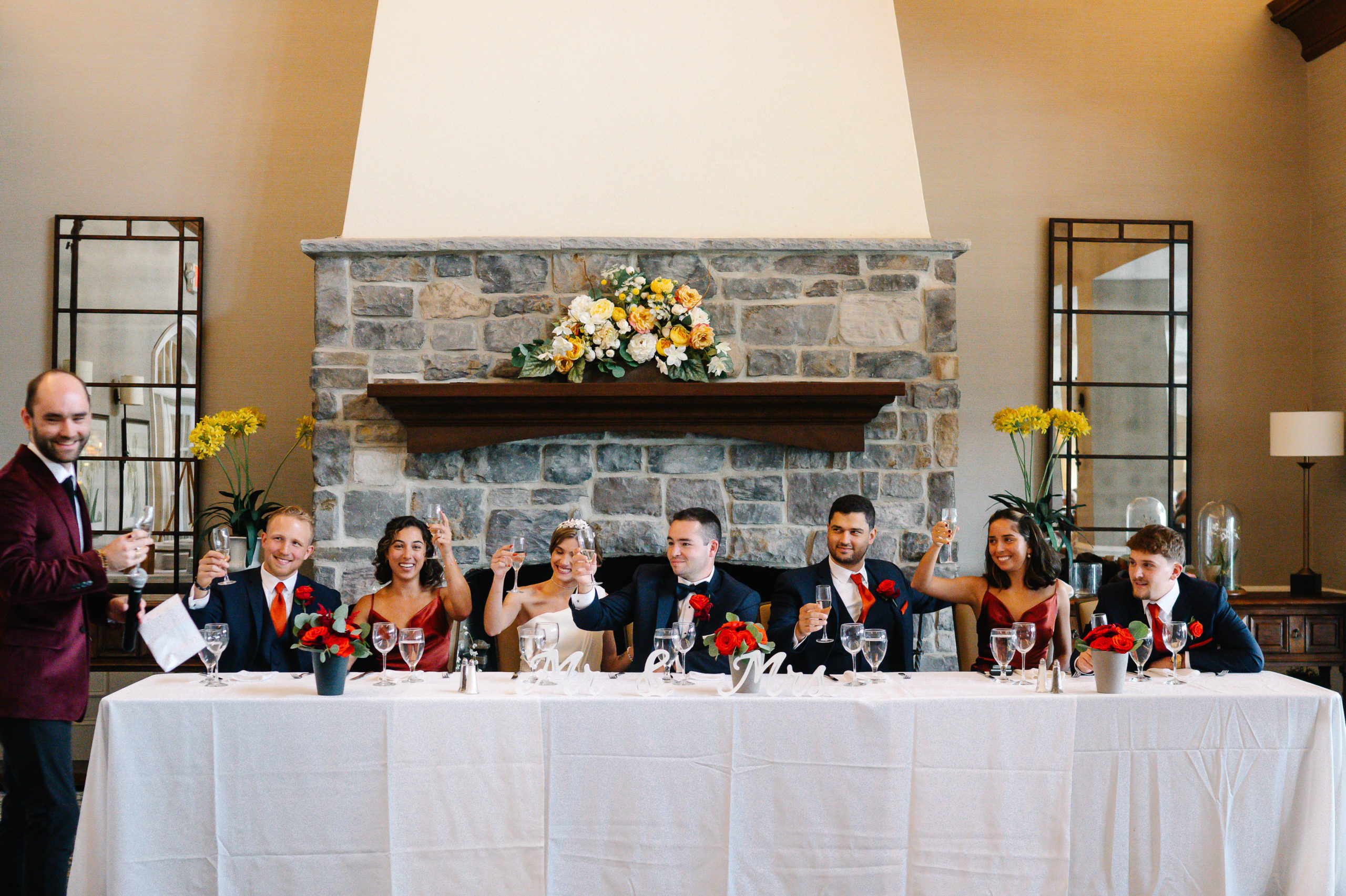 The ceremony took place at St. Patrick Parish in Malvern and the Reception at the Rolling Green Golf Club in Springfield. The rain timed itself just perfectly for us to arrive at the reception venue in a downpour, so we were forced to shoot all the couple’s portraits indoors.