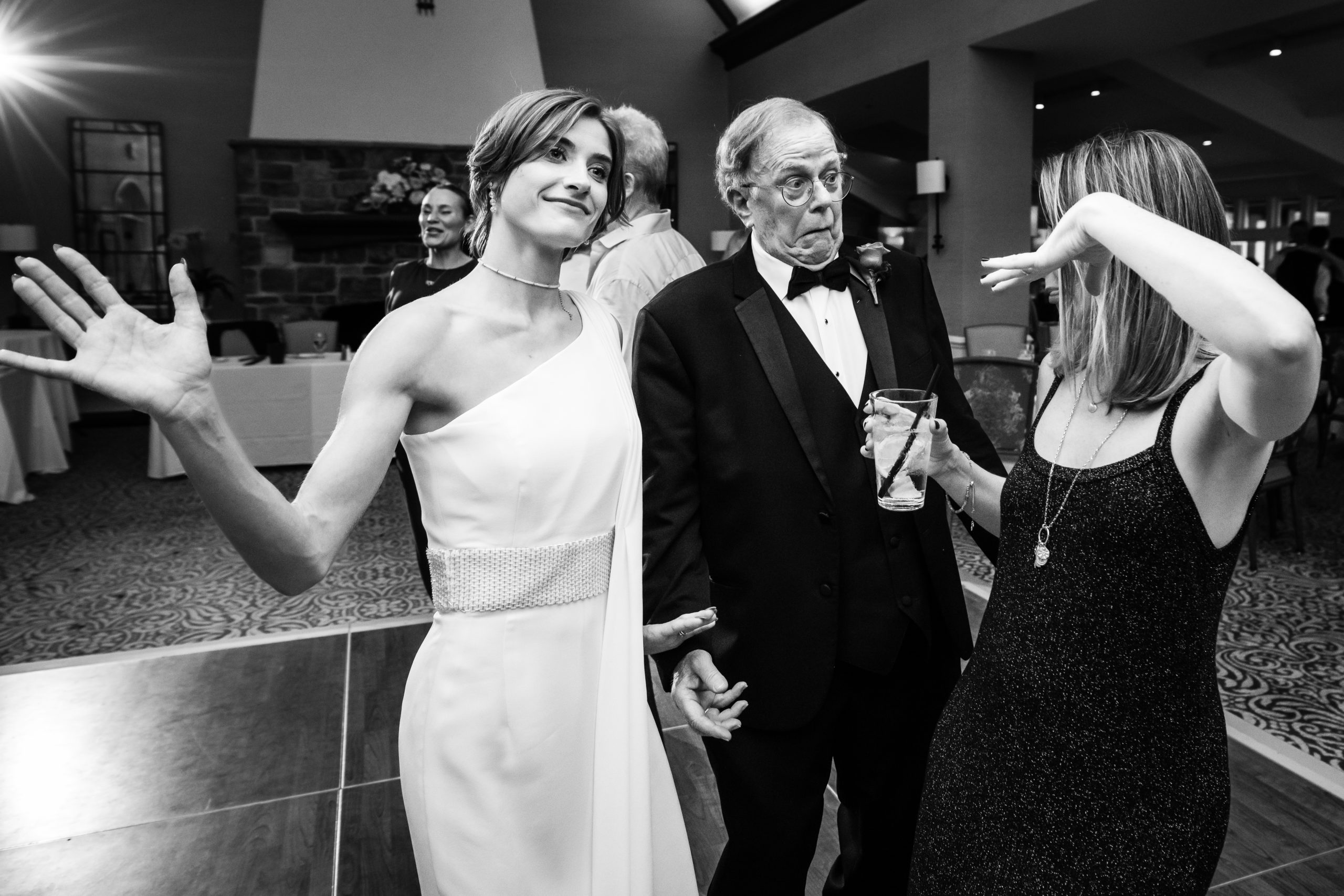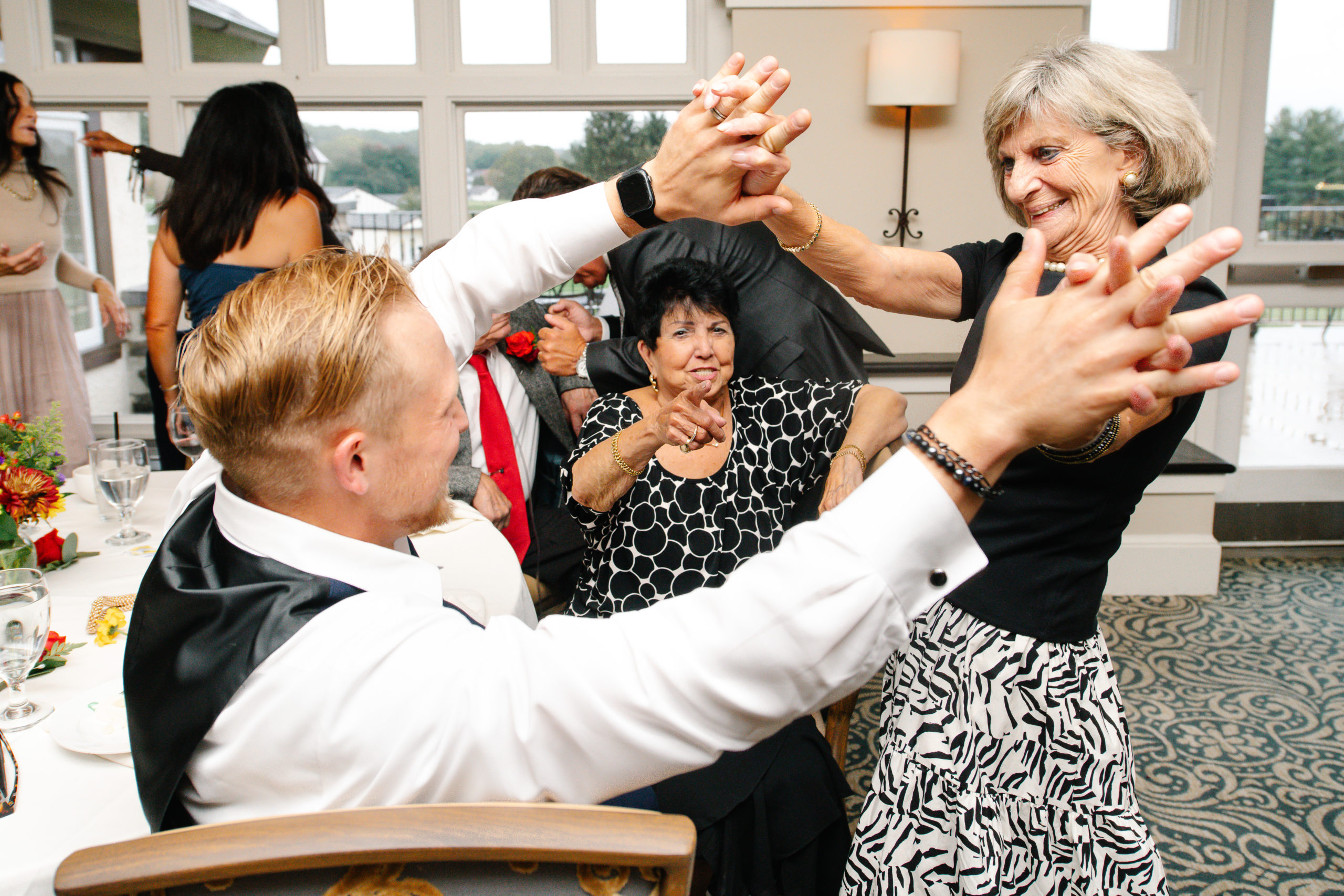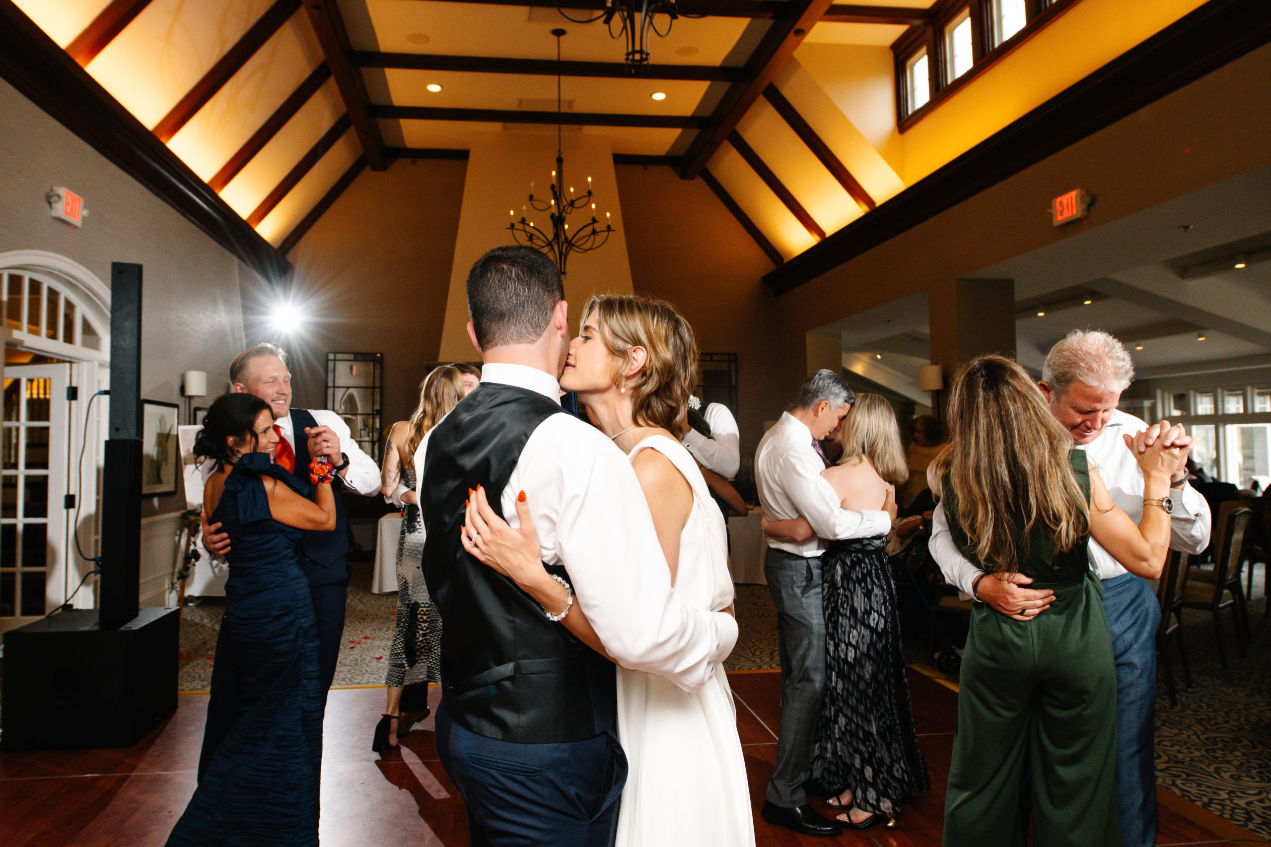 We may have been relegated to the covered patio downstairs, but the gorgeous couple and a little bit of soft light filtering in was all we needed to come away with stunning bride and groom photos. I was told the guests would be mostly on the older side so not to expect much dancing, but that turned out to be dead wrong! The joy for the couple had everyone and their mother (literally) cutting a rug in celebration, while the couple snuck in some romantic private moments.