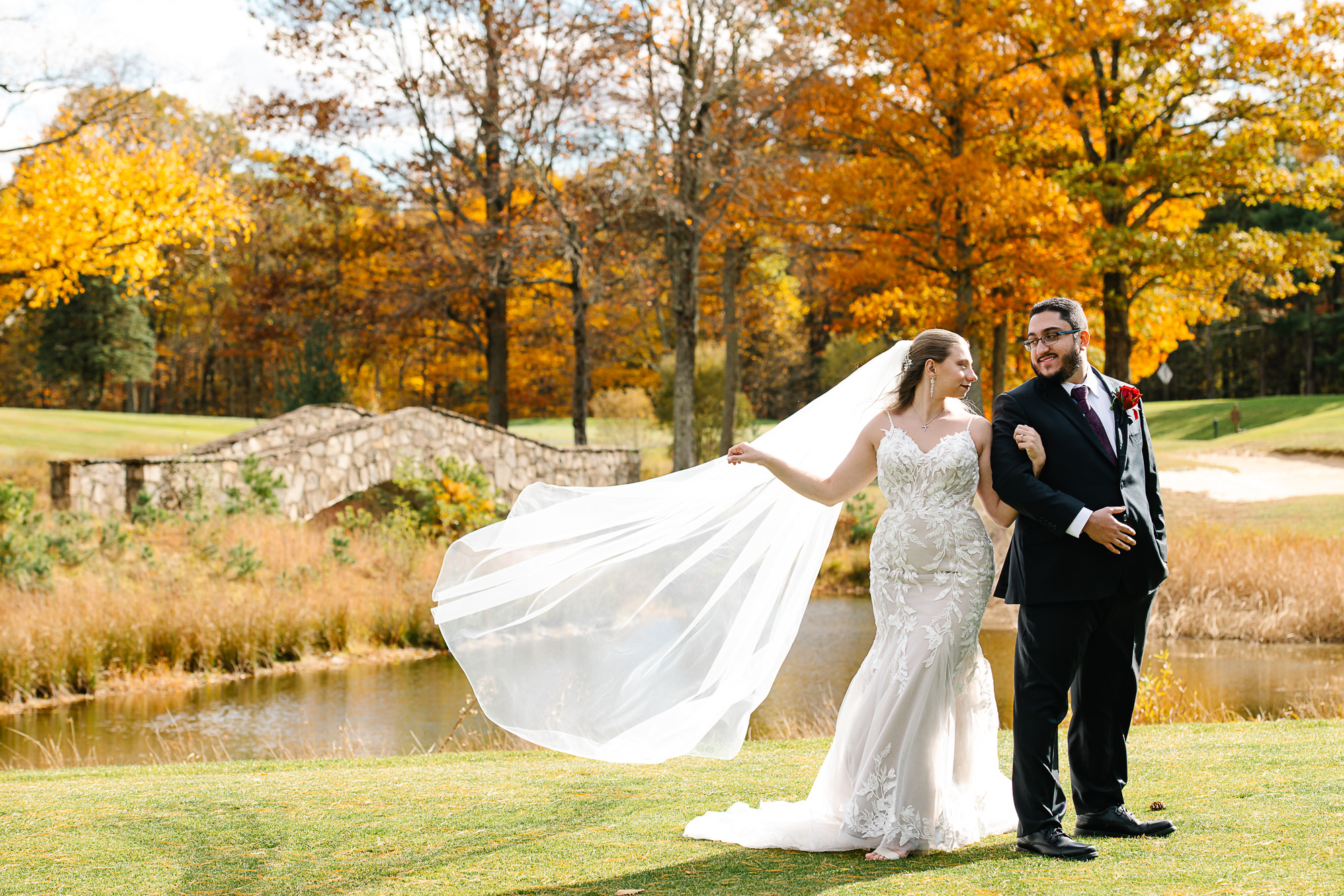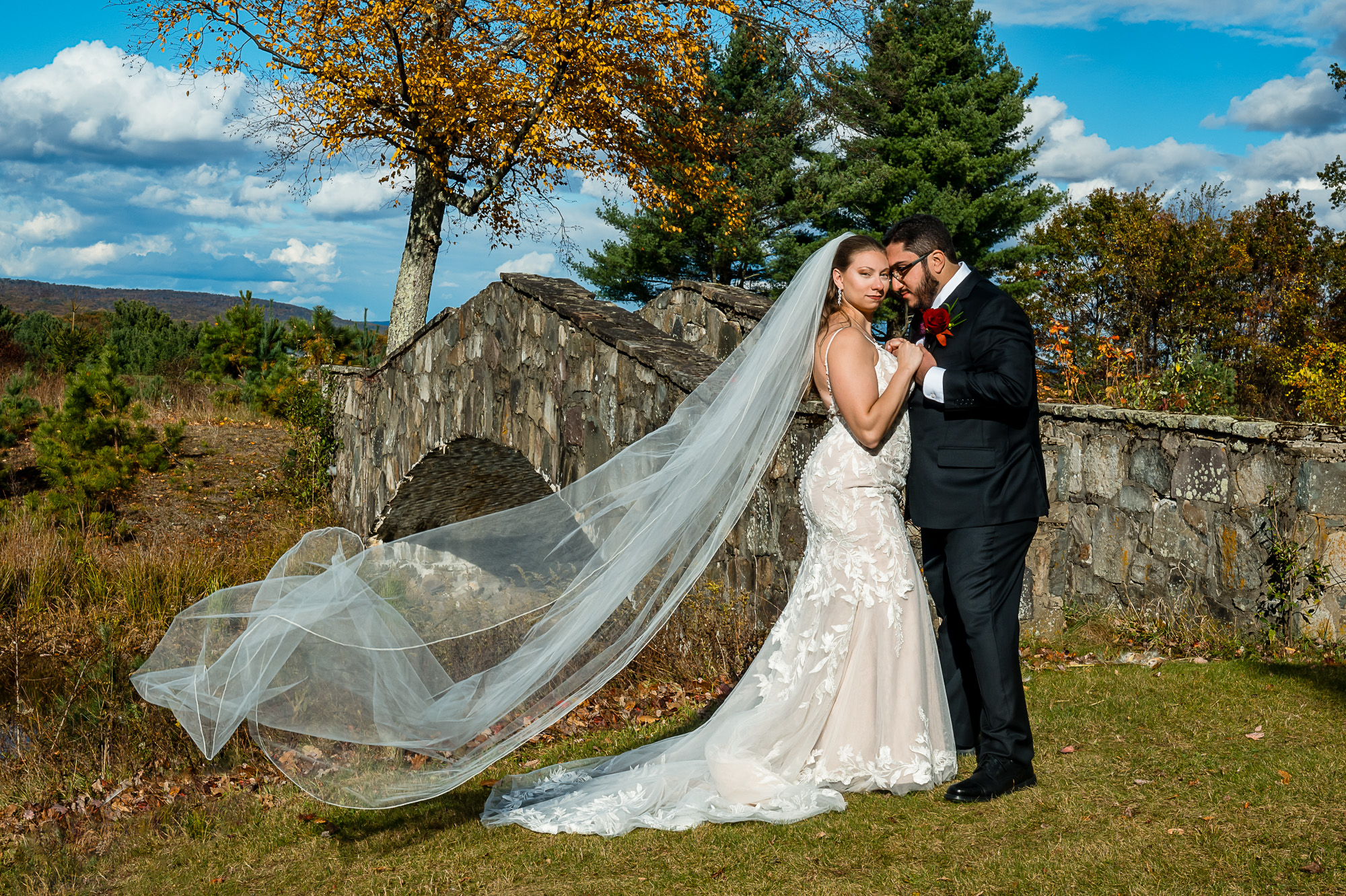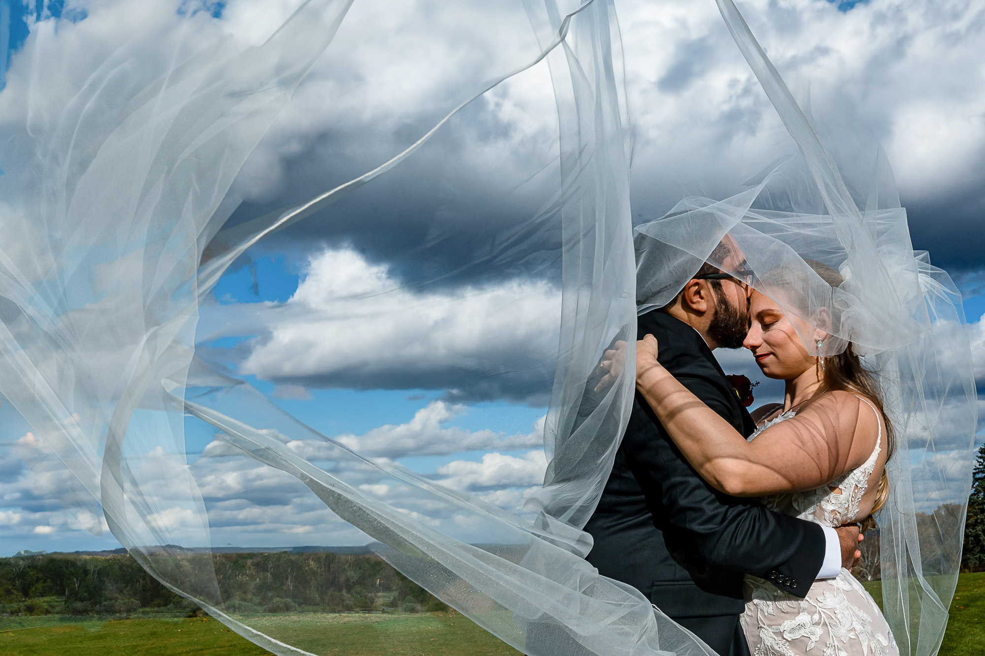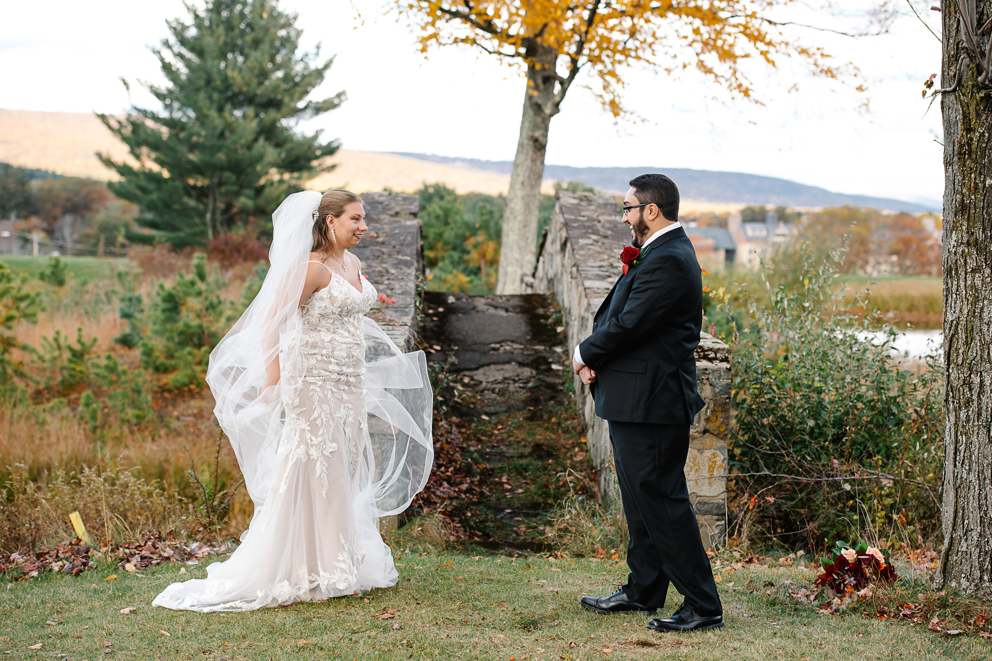 When the perfect couple for your photography style comes along, they tell you the picture you took of a ladybug stuck in the bride’s veil is going to be their favorite one. That was Brandon and Christina! These two recently tied the knot at the Mount Airy Casino and Resort in Mount Pocono, and I think we had some of the venue’s very first wedding party to get portraits at the first hole on the beautiful golf course.