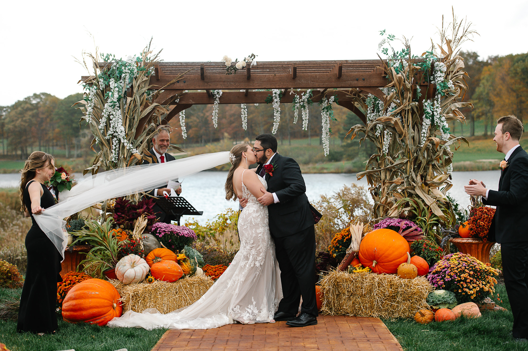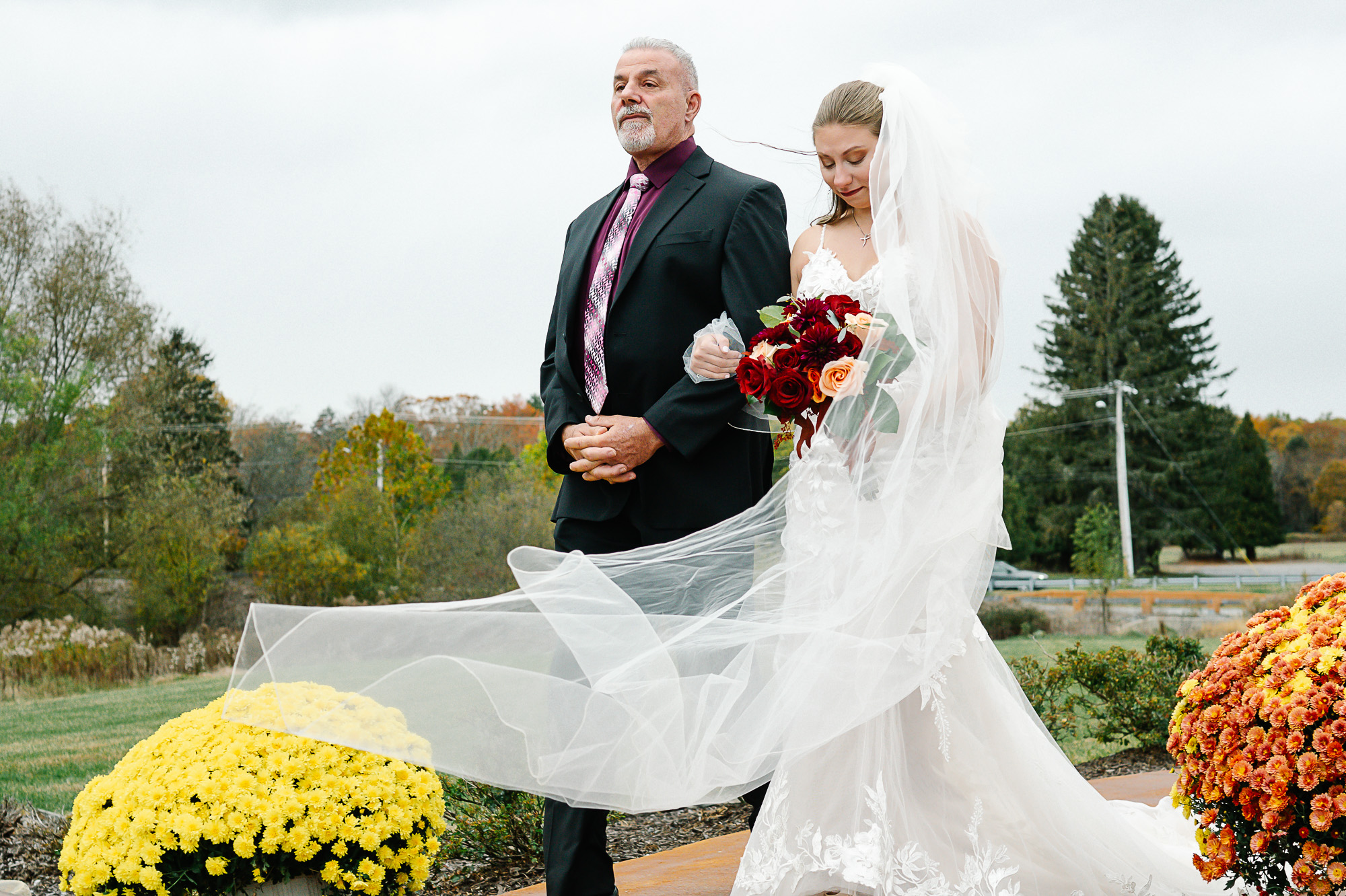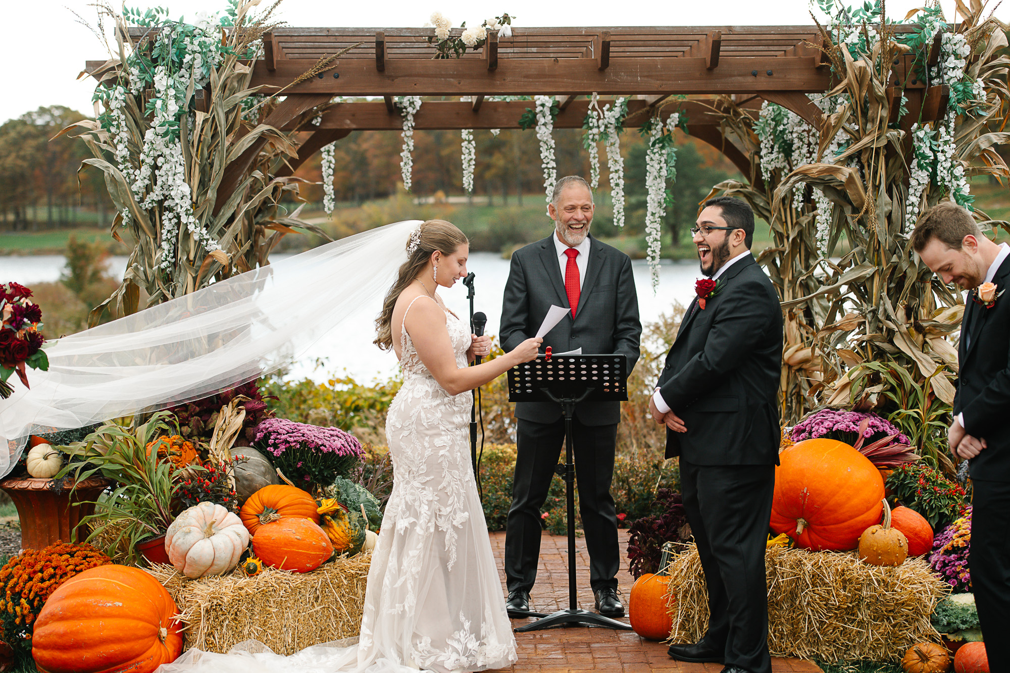 We had perfect Fall weather right up until a cold front rolled in just before their ceremony. The couple and their guests braved the freezing rain and hard wind to witness Brandon and Christina say their heartfelt vows. Christina’s Maid of Honor was MVP for holding onto the bride’s veil for dear life! The reception had a lively core crowd of the couple’s closest friends from college to close out the night.