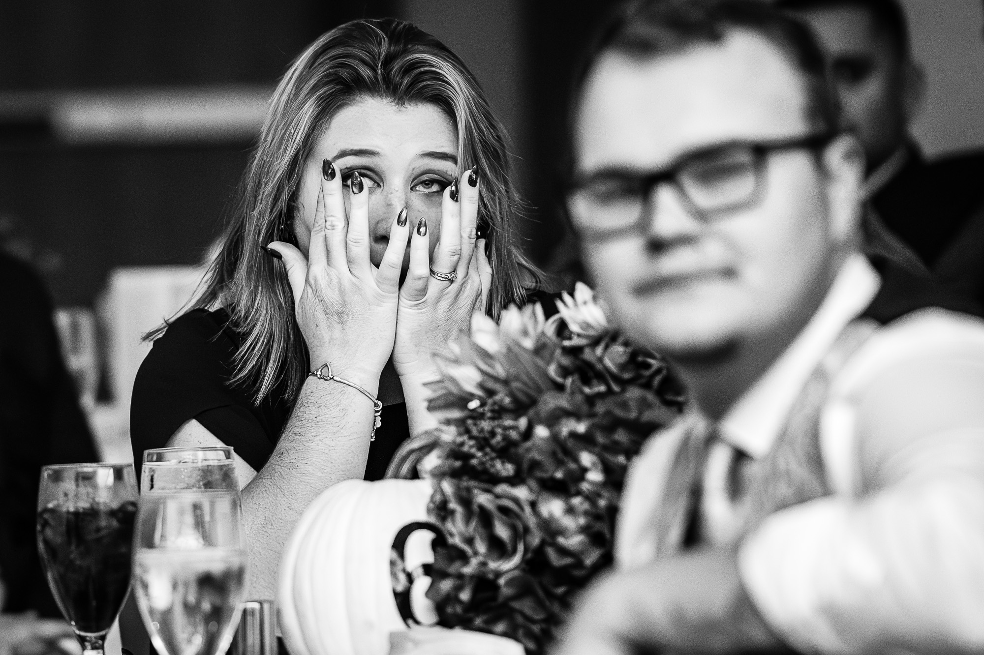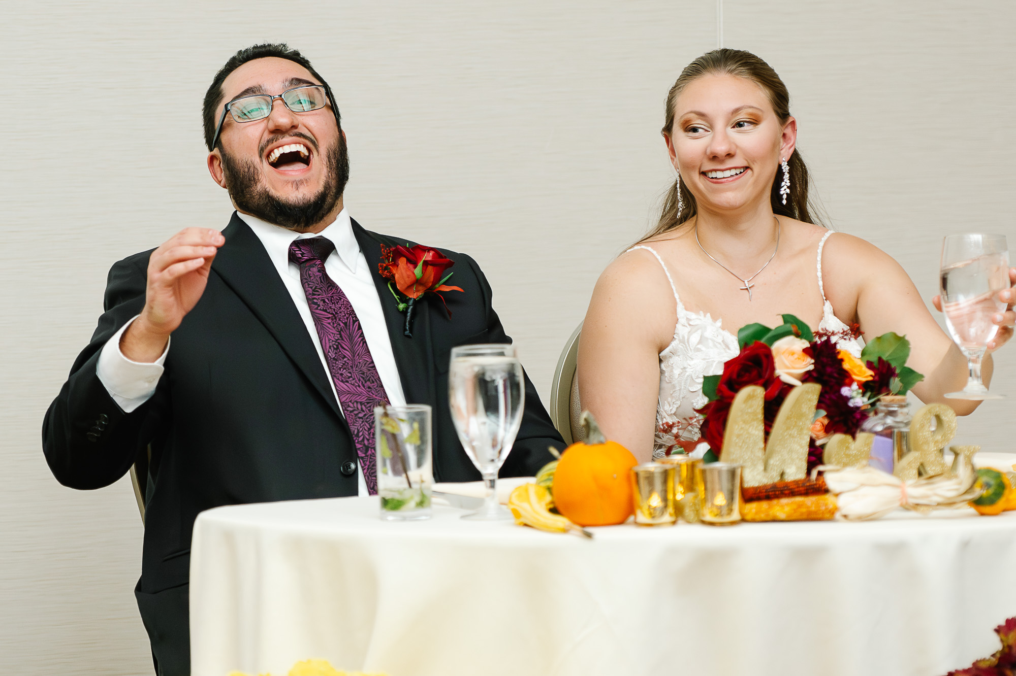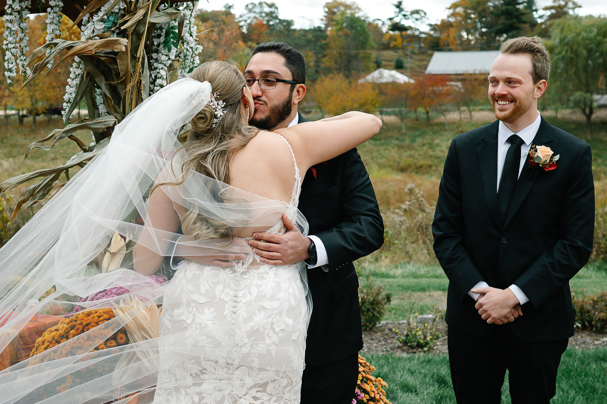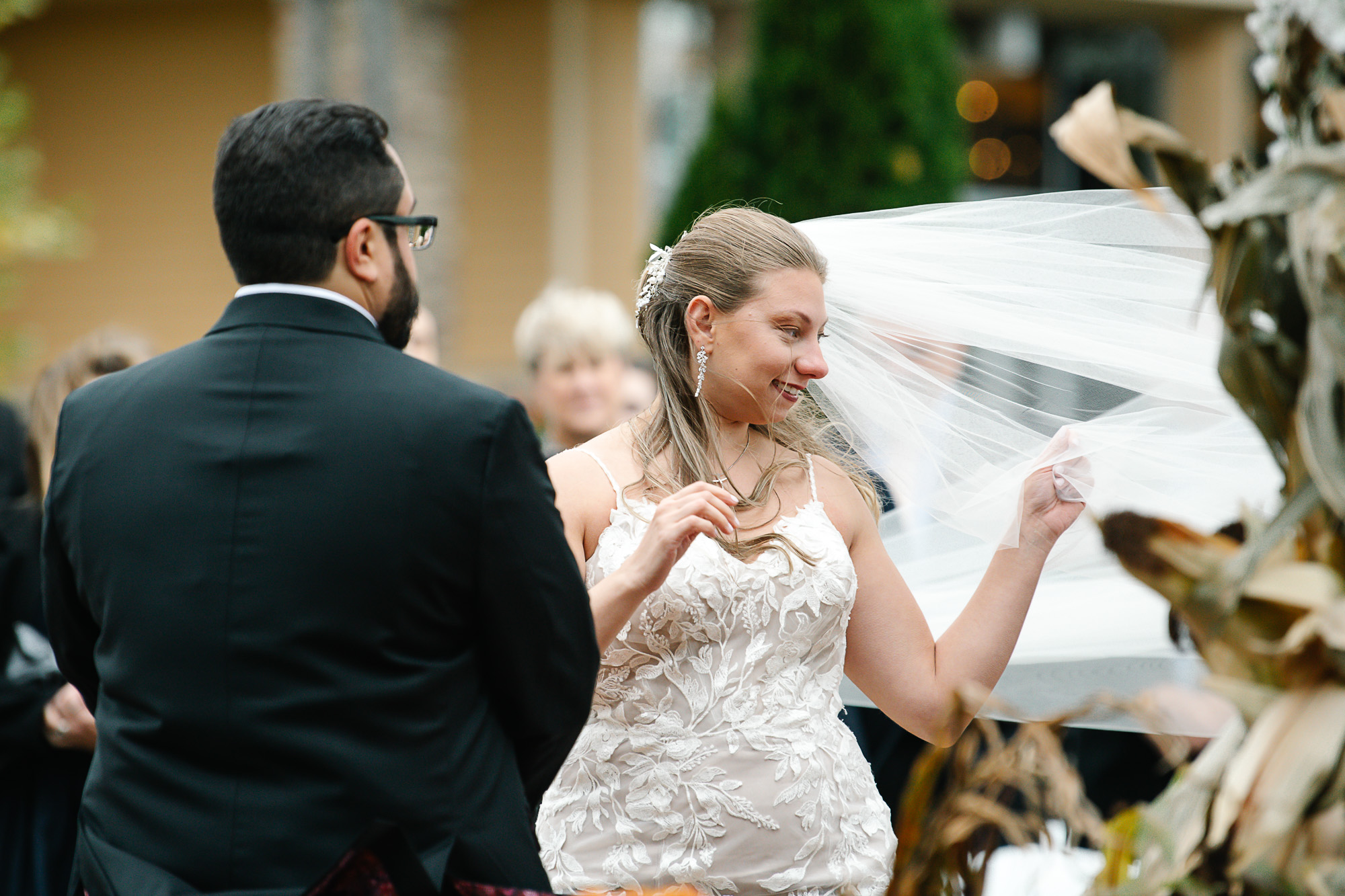 We had perfect Fall weather right up until a cold front rolled in just before their ceremony. The couple and their guests braved the freezing rain and hard wind to witness Brandon and Christina say their heartfelt vows. Christina’s Maid of Honor was MVP for holding onto the bride’s veil for dear life! The reception had a lively core crowd of the couple’s closest friends from college to close out the night.