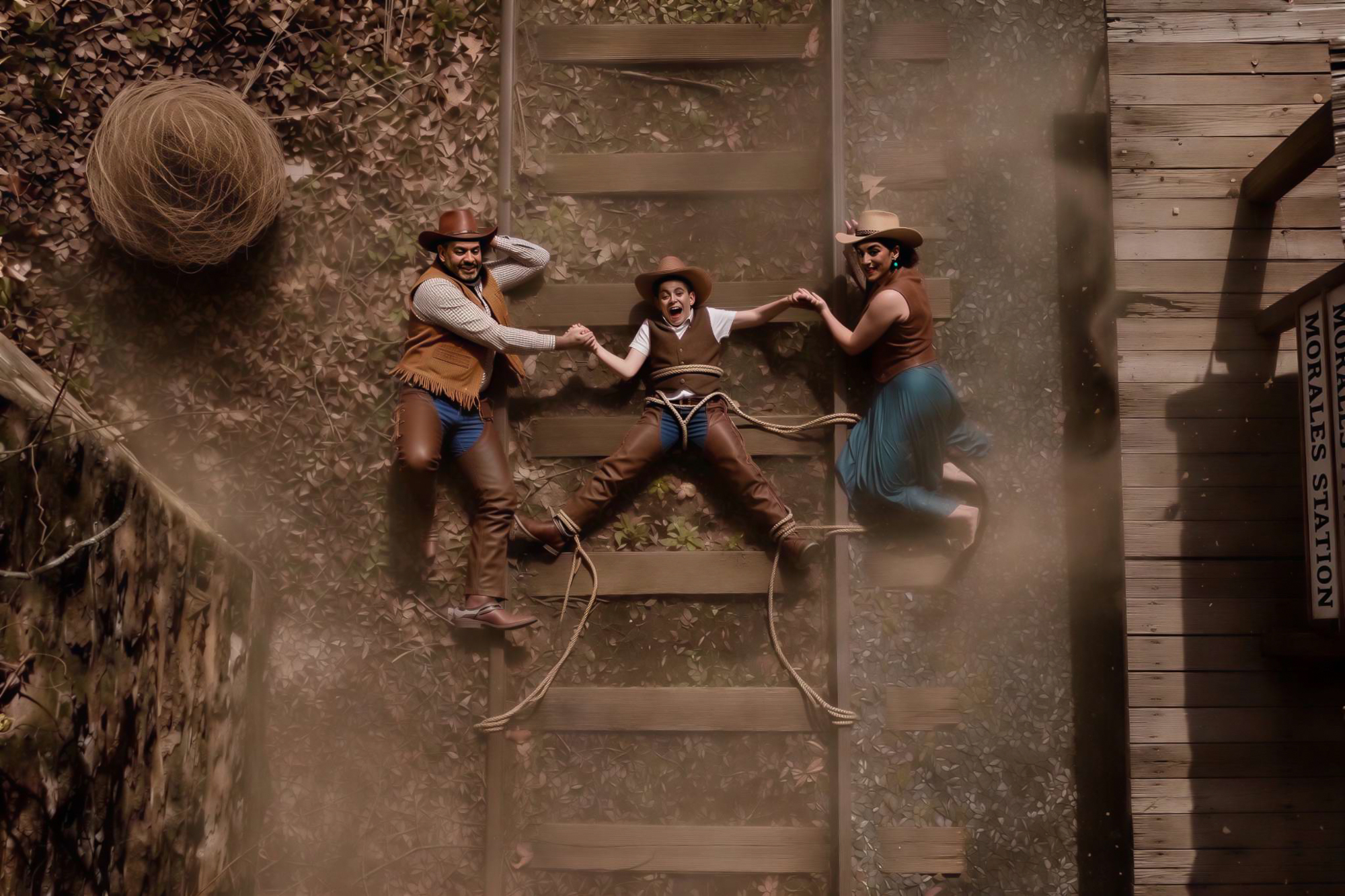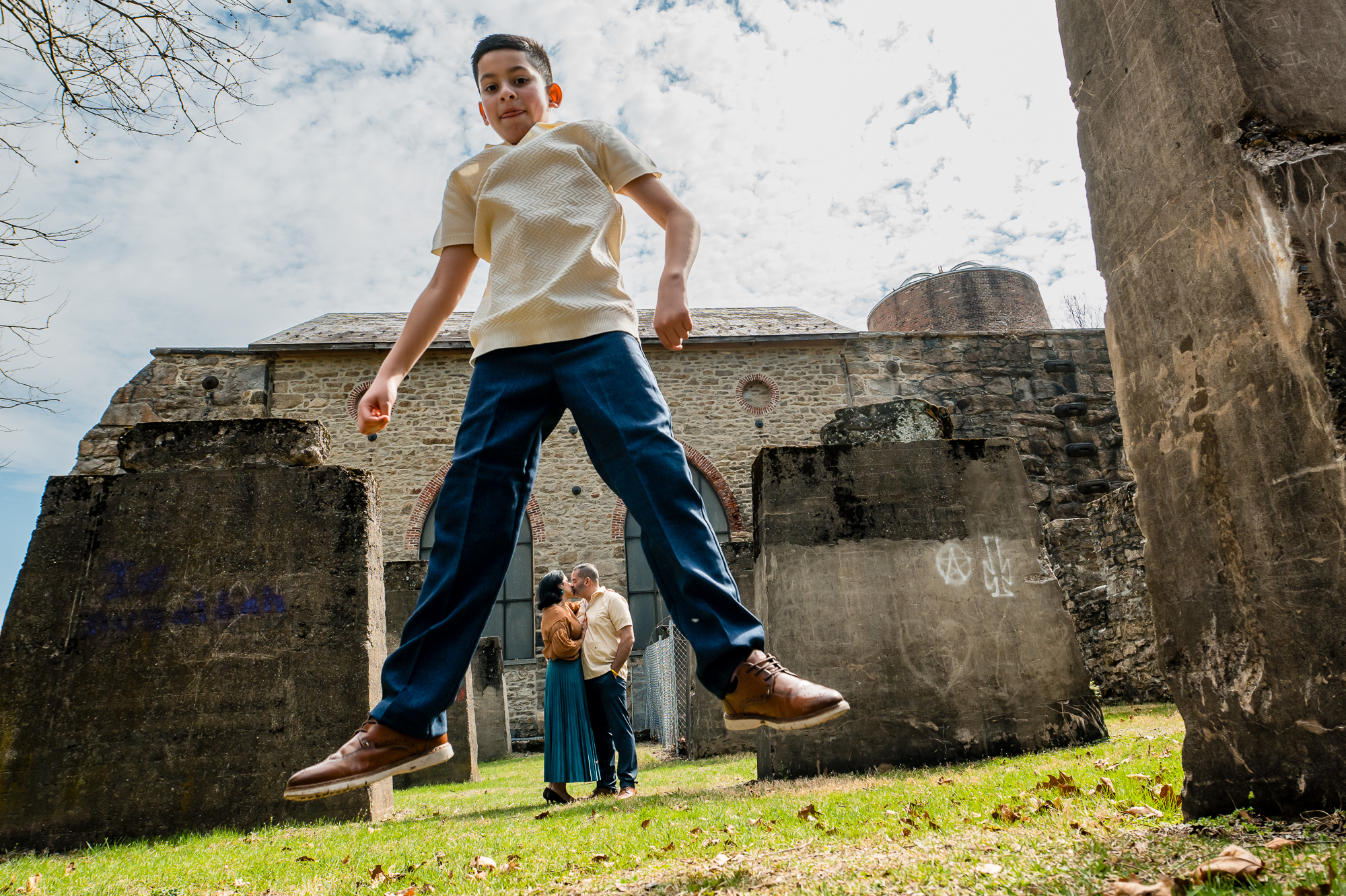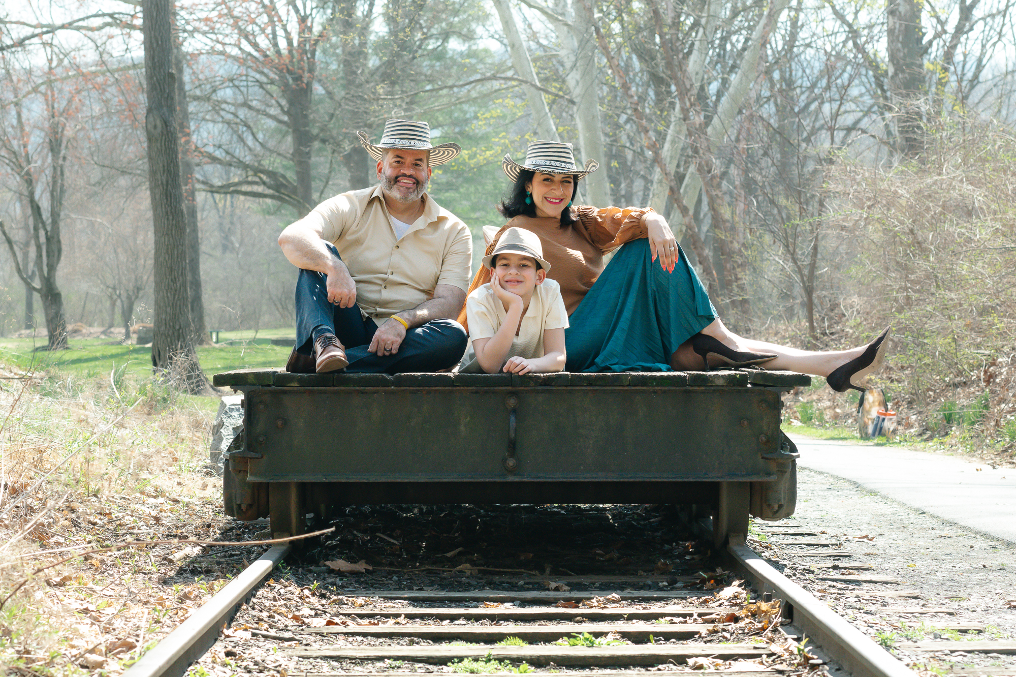 Their recent family session took place at the beautiful Lockridge Park, which was a nice partway point for us from their home in the Poconos. We got so many great images right off the bat, we finally took to getting pretty darn silly with it. By the time we got to the last image in this set, I had them laying on a random piece of train track that we found that was NOT CONNECTED to anything on either end, so 100% safe. I don’t recommend anyone take pictures on tracks even if they think they are inactive. I used AI to change the outfits and add the tumbleweed, dust and Saloon, but the rest of the image is actually really authentic to the original.